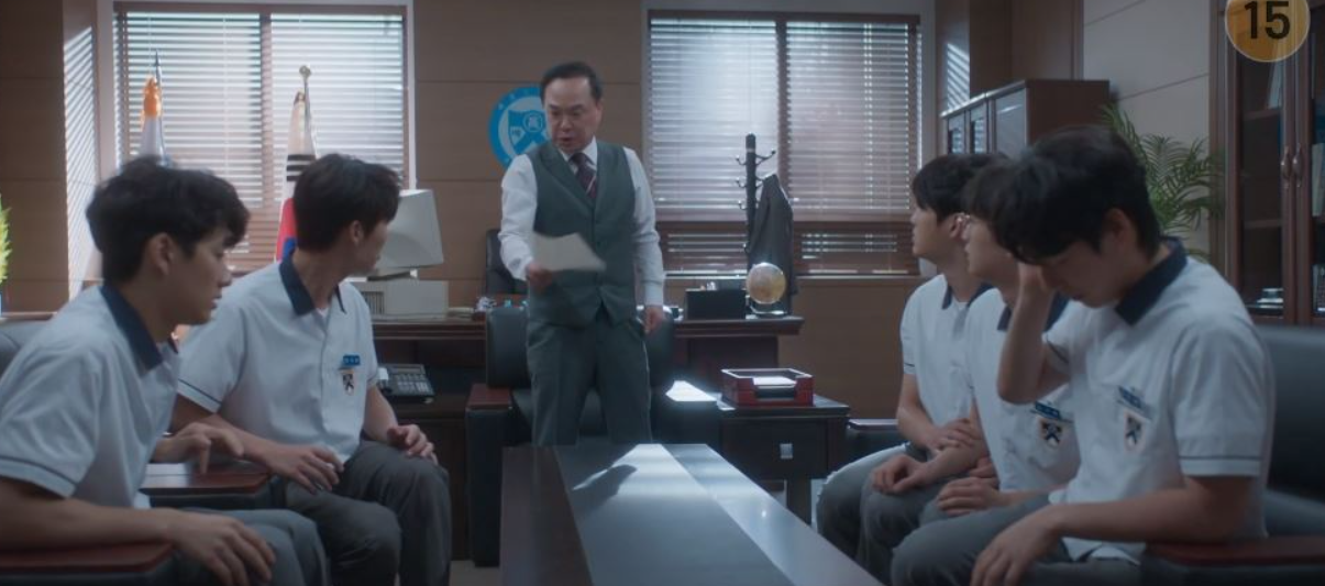 학교에 온 밴드부원들을 교장선생님께 불려옵니다. 리허설때 패싸움한것이 발각된줄 알고 덮어두고 잘못했어요 하는 밴드부원들에게 교장선생님이 내민 것은 전국청소년 밴등 경연대회 신청서!