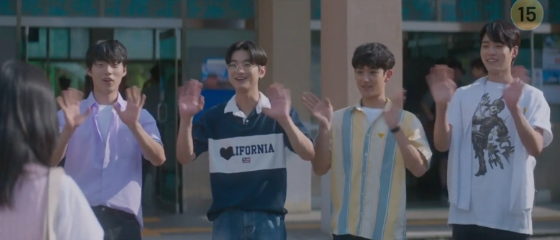 드이어 송캠프 당일! 뜨악! 커플로 등장한 은결과 세경(은유). 이찬과 청하를 보고 저마다 친구들은 놀라지만 반갑게 인사를 합니다. 특별히 오랜만에 다시 만난 청하를 위해 친구들역시 수화로 인사를 거냅니다.