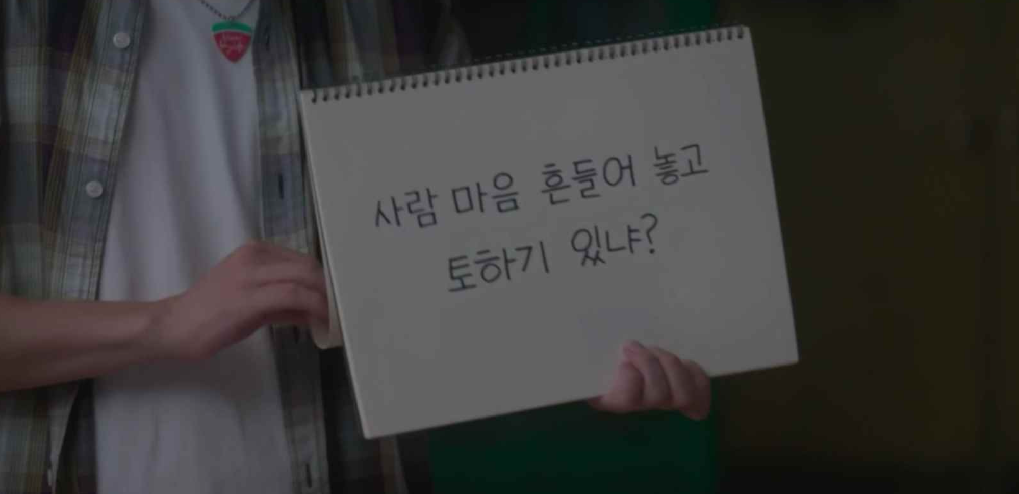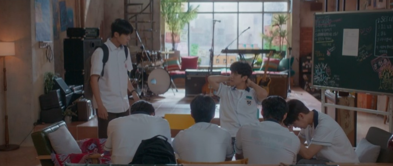 할머니까지 나서서 청하에게 밥을 먹고 가라고 하지만... 불편한듯 택시타고 사라진 청하. 청하의 고백이후 축제날을 마지막으로 여전히 어색한 사이.. 청하에게 제대로 마음을 전하고 싶었던 이찬은 은결에게 부탁해서 청하가 합주실로 오게 합니다. 드디어 청하를 제대로 마주하게 된 이찬은 스케치북 글로 마음을 전합니다.