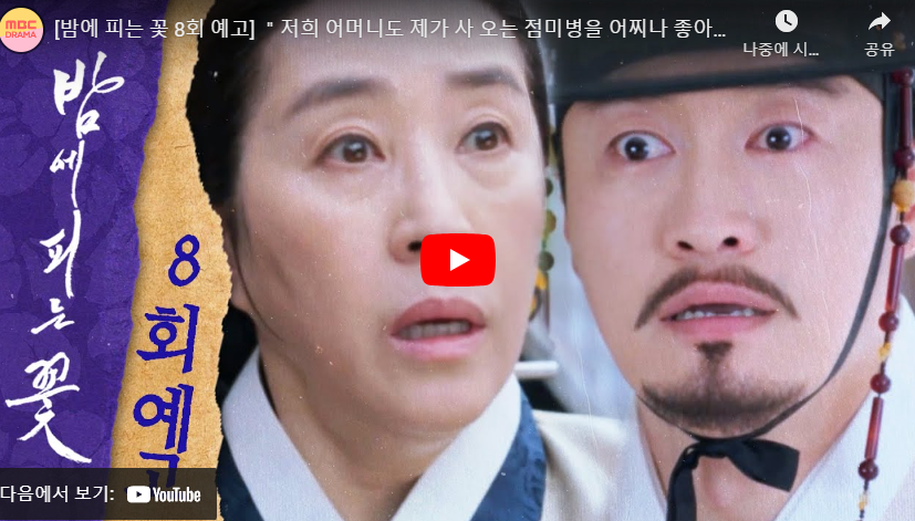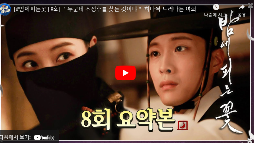 목차 밤에 피는 꽃 8회 줄거리 명대사& 명장면 밤에 피는 꽃 8회 줄거리 핵심요약 & 엔딩 ▶ 영상보기 [ 8회 하이라이트] 하나씩 드러나는 여화 오빠와 남편 죽음의 진실] 밤에 피는 꽃 [#밤에피는