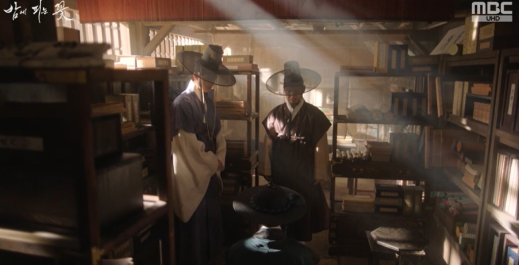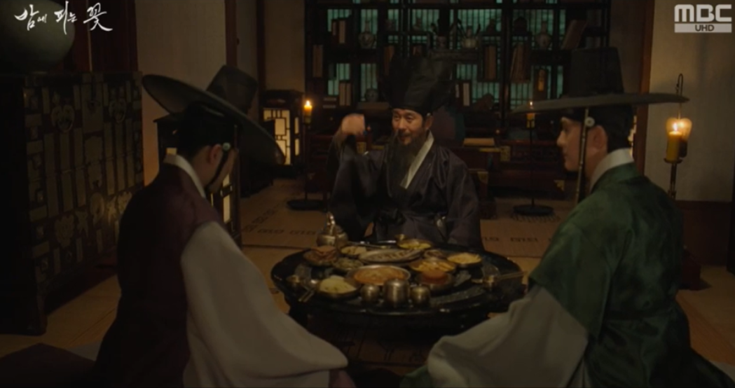 찜찜한 마음으로 좌상과의 짧은 술자리를 마치고 나온 윤학은 수호에게 다음날 세책방에서 은밀히 만나자는 약속을 하고 헤어집니다.