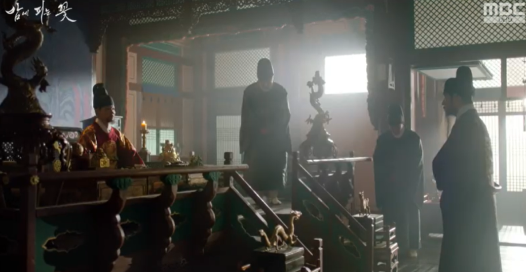 그 시각 임금은 여화와 여화의 오라버니 조성후에 대한 보고를 받으며 선왕의 옥패와 밀명을 받은게 조성후라면 좌상이 조성후가 함부로 행동하지 못하도록 여화를 며느리로 삼아 볼모로 삼고 있는 것일 수 있다며 윤학에게 여화가 좌승댁 며느리가 된 사연에 대해 더 알아보라고 명합니다.