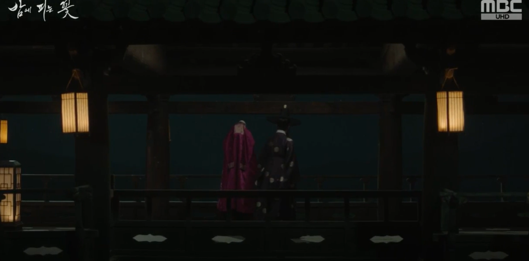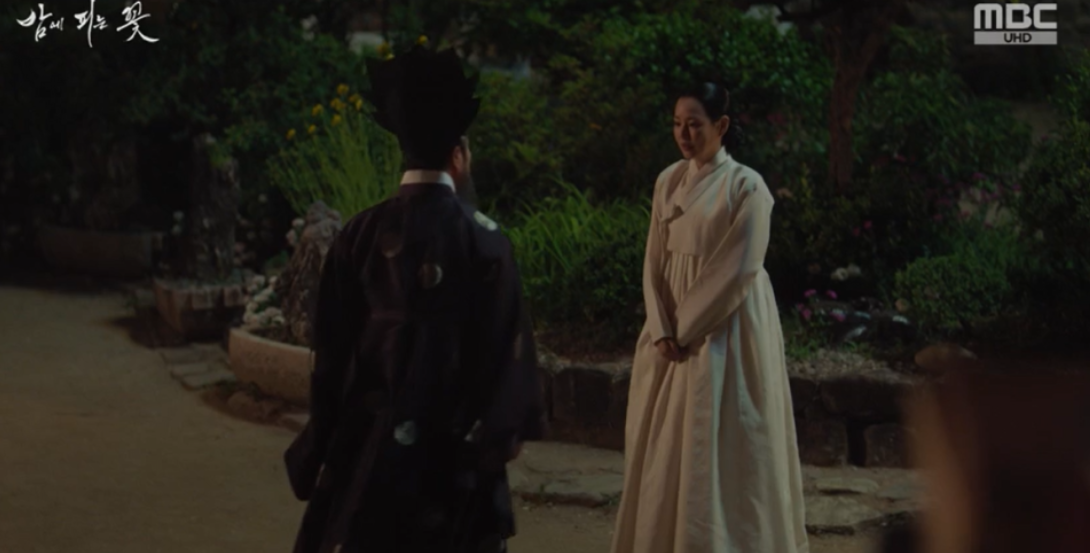 대행수는 수호에게 위험하니 담장을 넘지 말라는건 여화에게 그냥 말라 죽으라는 것이고 그렇다고 여화를 담장 밖으로 꺼내 줄 수 있는 것도 아니잖냐며, 수호가 여화를 위해 해줄 수 있는 것이 아무것도 없으니 앞으로는 여화를 만나지 말아달라고 부탁합니다. 낮의 대행수의 부탁을 떠올리며 수호는 고민에 빠집니다.