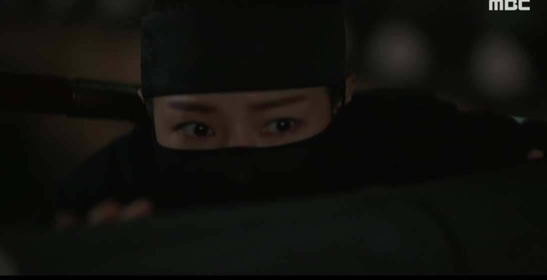 시아버지와 이야기를 나눈 후 복면차림으로 볼일을 보려뎐 여화는 아버지 석지성이 누군가 이야기 나누는 것을 보게 됩니다.