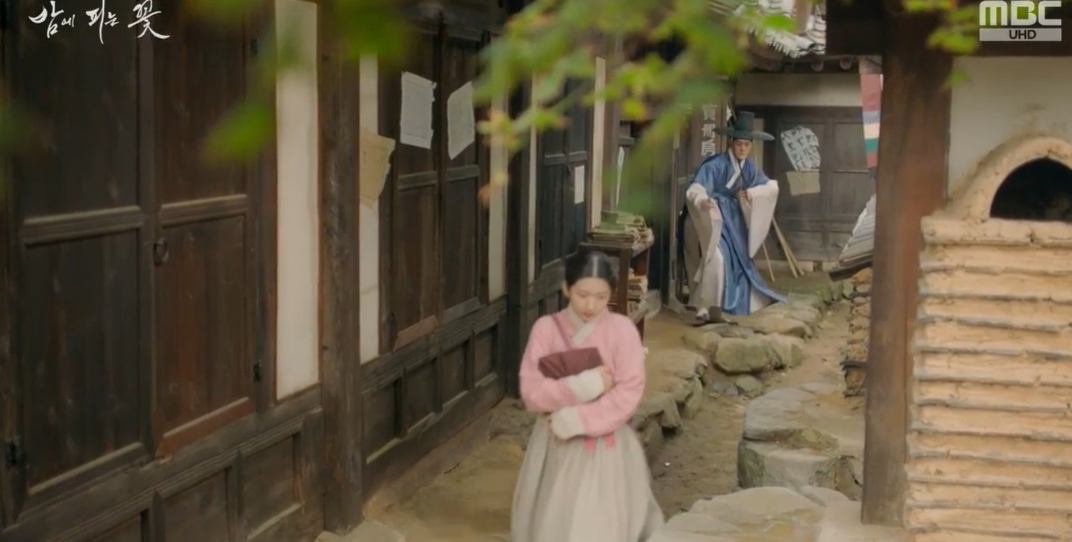 책방에 들렀다가 윤학을 마주친 연선은 당황하여 윤학을 피해 도망을 나옵니다. 지체놓은 양반이 자신을 마주하며 안된다는 연선에게 어제일을 해명하라며 붙잡는 윤학.