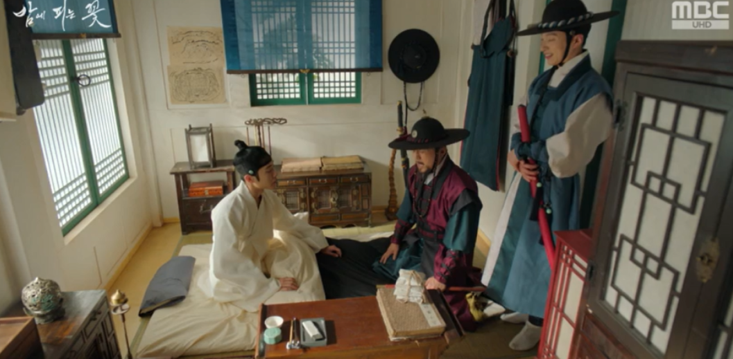 다음날 수호가 아프다는 소식에 찾아온 금위대장은 수호가 상사병에 걸린줄 알고 푹쉬라며 위로를 해주고 갑니다.
