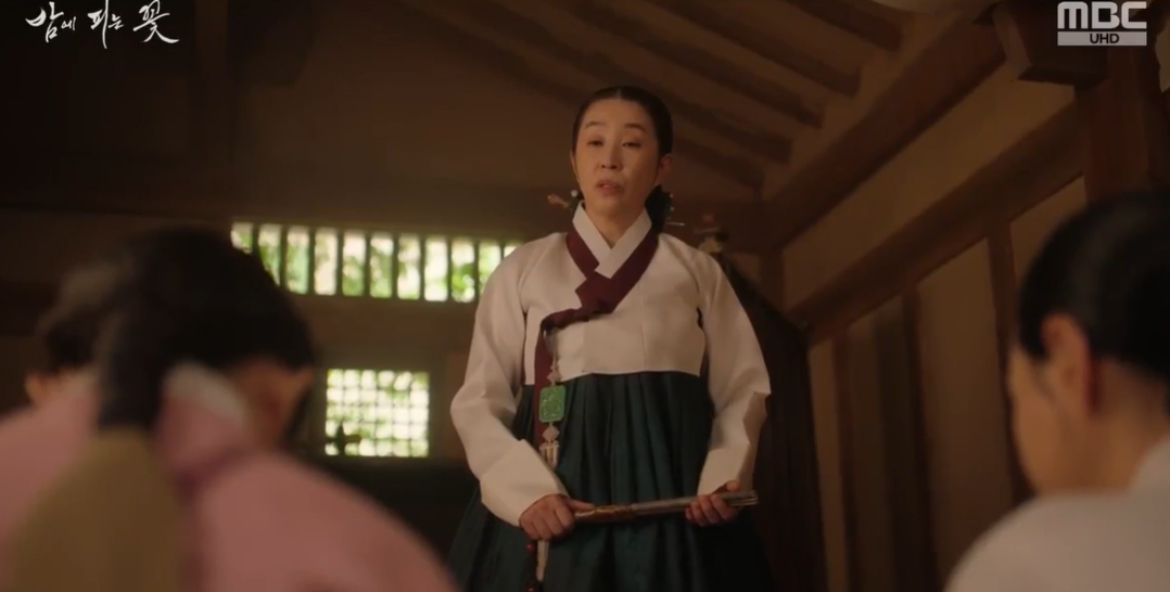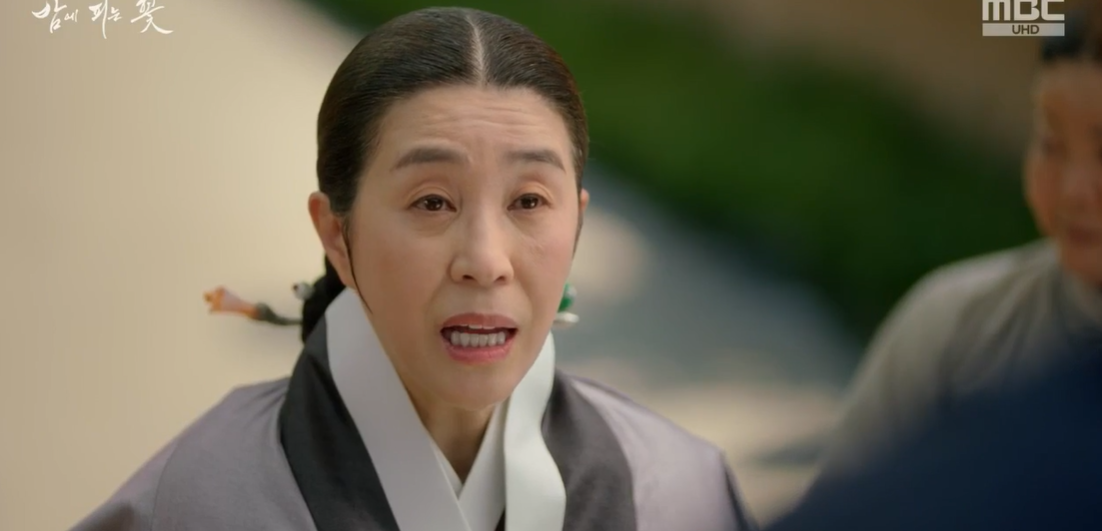 여화가 말문이 막혀 자신의 것이 아니라며 잡아떼자 유금옥은 모든 식솔을 불러 치도곤 ( 뜻: 엉덩이를 치는 몽둥이) 써서라도 부채를 숨긴 범인을 찾아내라고 합니다. 식솔들이  매를 맞게 될 것을 염려한 여화가 안된다며 어머니와 대립하자 연선이 뛰어들어 자신이 숨긴것이라고 이야기를 꾸며댑니다.  도적떼를 만나 곤란에 빠져있을 때 누군가 도움을 주고 부채를 흘리고 갔다 핑계를 댄 연선.