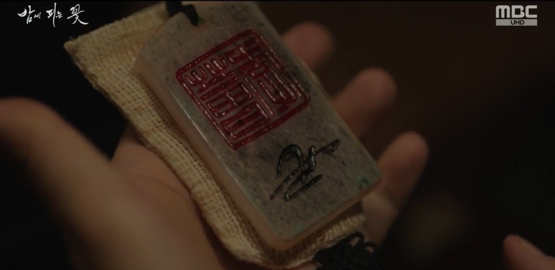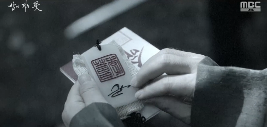여화를 들여보내고 회상에 잠긴 석지성. 알고보니 강필직을 시켜 선황의 어패( 어패 뜻:임금을 상징하는 ‘殿’ 자를 새겨 각 고을의 객사(客舍)에 세운 나무패) 와 교지 (교지 뜻: 왕명서, 조선 시대에, 임금이 사품 이상의 벼슬아치에게 주던 사령辭令) 를 받은 여화의 오라버니를 쫒아 없앴던 것이 석지성이였습니다.
