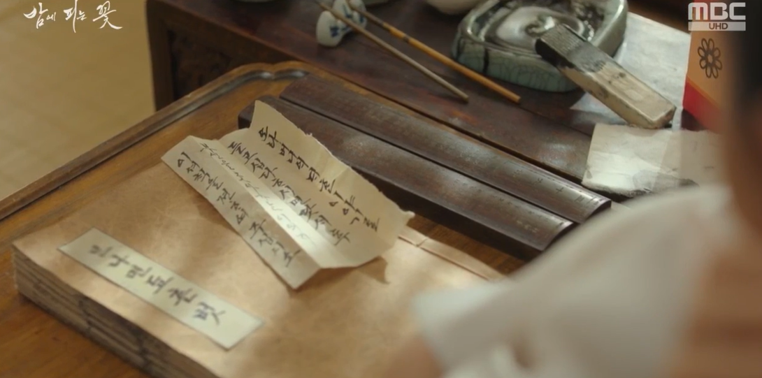 윤학이 남긴 서책과 쪽지때문에 여화는 고민을 하고 있는데 방물장수가 찾아와 은밀히 서책은 잘 받아봤냐고 물으며 참빝과 함께 약속장소가 적힌 쪽지를 건내줍니다.