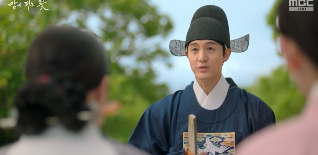 직접 좌부승지 영감을 만나러 가 부채를 돌려주는 데 윤학은 뒤에 서있는 연선의 눈치를 받고는 얼떨결에  그 부채가 자신의 부채라며 연선을 감싸줍니다.