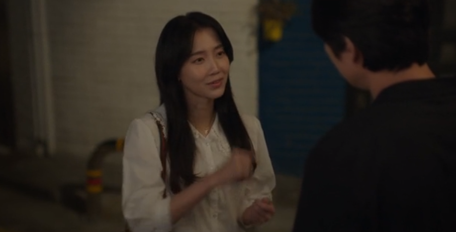 술자리를 마치고 모은을 집에 데려다준 진우에게 모은은 인사를 하고 들어가려고 합니다.