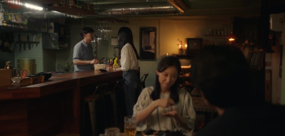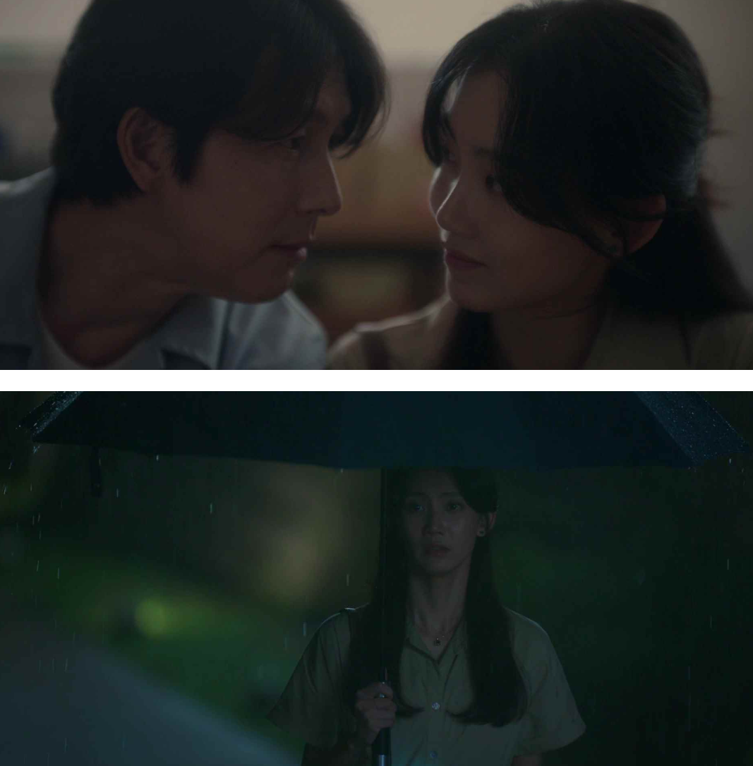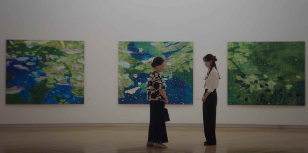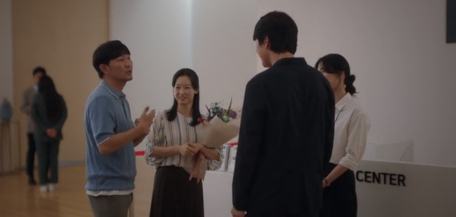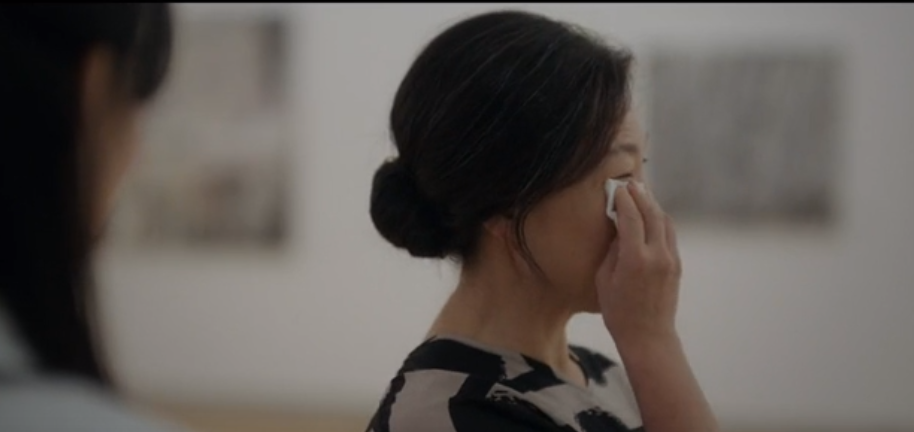 전시회가 끝나갈 무렵, 진우는 먼저 나가고 혼자남은 모은은 느즈막히 방문한 중년의 여성 관객을 맞이 합니다. 진우의 그림을 보다가 눈물을 흘리는 관람객에게 조용히 다가가 모은은 이번 전시회의 마지막 관람객이시라며 슬며시 휴지를 건내줍니다. 모은은 실계가 왜 눈물을 흘리셨는지 여쭤봐도 되냐는 묻고 관람객은 그냥 눈물이 났다며 답을 해줍니다.