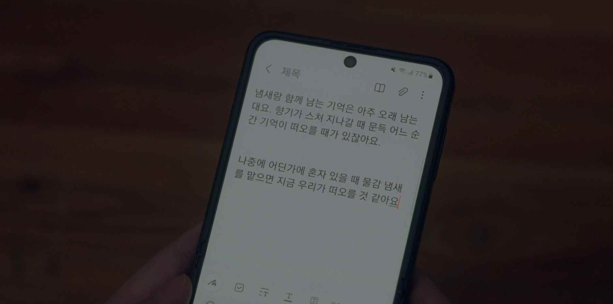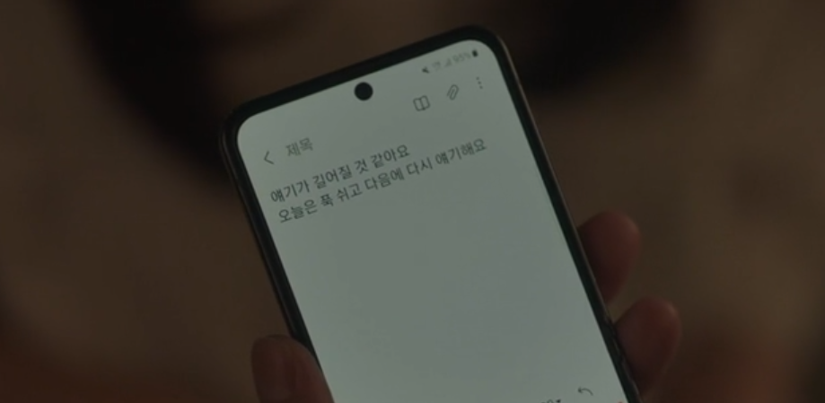 살짝 어두운 모은의 표정이 신경쓰였는지 진우는 할 이야기 있으면 편하게 하라고 하지만 모은은 몇자 적다가 다음에 이야지 하자며 집에 들어옵니다.
