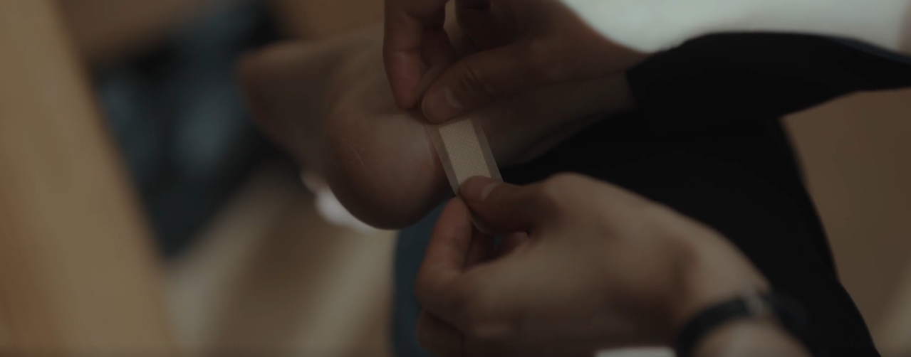 다음날 모은은 지유 덕분에 아트센터 갤러리에서 아르바이트를 하게 됩니다. 오랜만에 신은 구두때문에 발이 아파 알바가 끝나자 마자 신발을 벗어버리는데 마침 수업을 마치고 나온 진우와 마주치고, 진우는 모은에게 실습실로 가자더니 밴드를 건내줍니다.