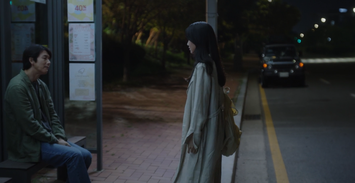 모은이 내리는 버스정류장에 기다리던 진우는 버스에서 내린 모은에게 바다를 보러 가자고 합니다.