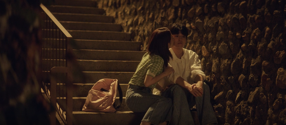 조용히 모은 뒤를 따라 걷던 진우는 장난기가 발동한듯 돌맹이를 던지고 그제서야 모은은 진우를 발견합니다.