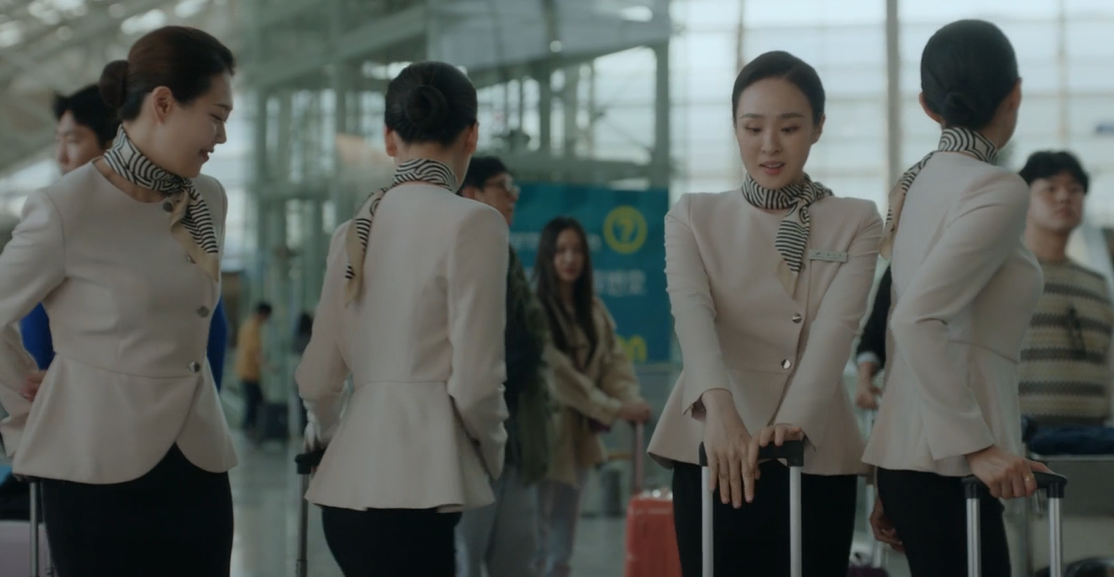 모은은 승무원역 엑스트라 역을 맡아 촬영을 하고 있습니다. 우연히 만난 옛 동료는 모은을 보고 반가워 하며 지금은 어디서 일을 하냐고 묻고, 모은은 꿈꾸던 배우 준비를 하고 있다고 이야기 합니다.