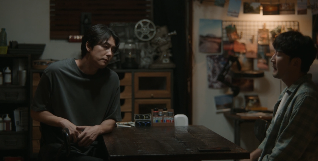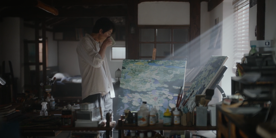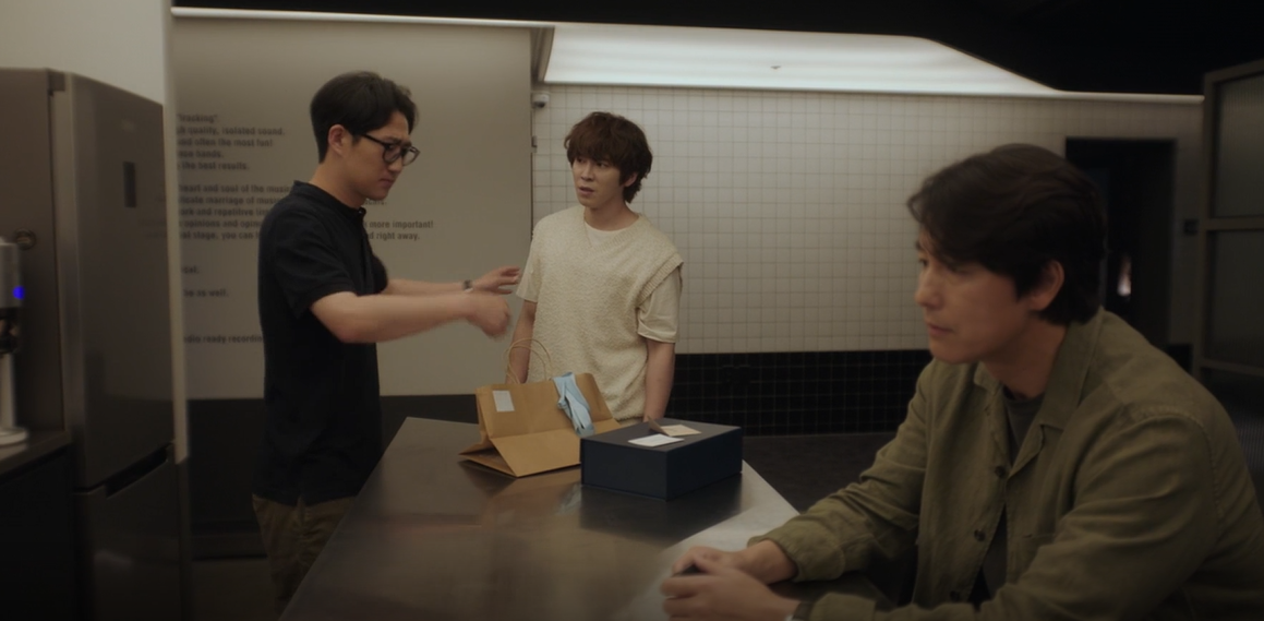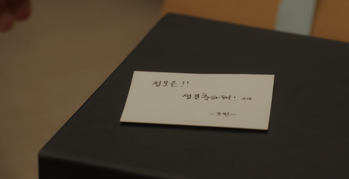 진우는 새로 완성한 그림을 설치하러 갔는데 그곳은 조한의 기획사 였습니다. 마침 조한이 매니저가 자신의 물건을 만졌다고 화를 내며 나오는데, 옆에서 그 모습을 지켜보다가 진우는 모은에게 쓴 생일카드를 보게됩니다. 그제서야 얼마전 집앞에 찾아와 날이 모은 본인의 생일날이였음을 짐작합니다.