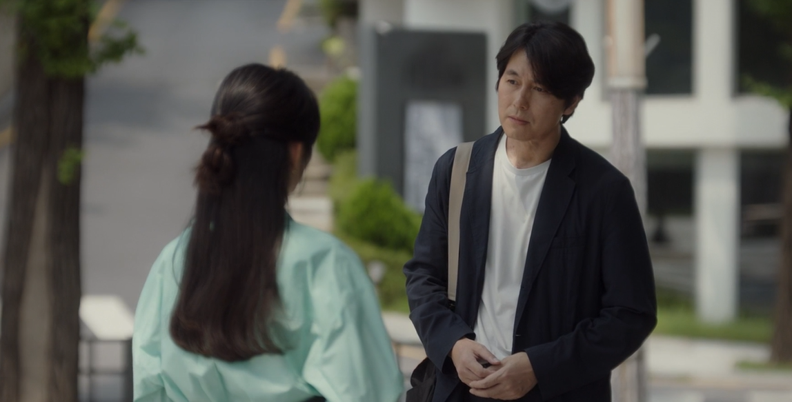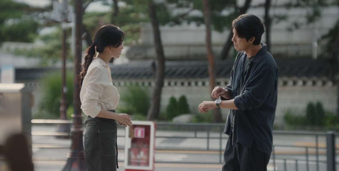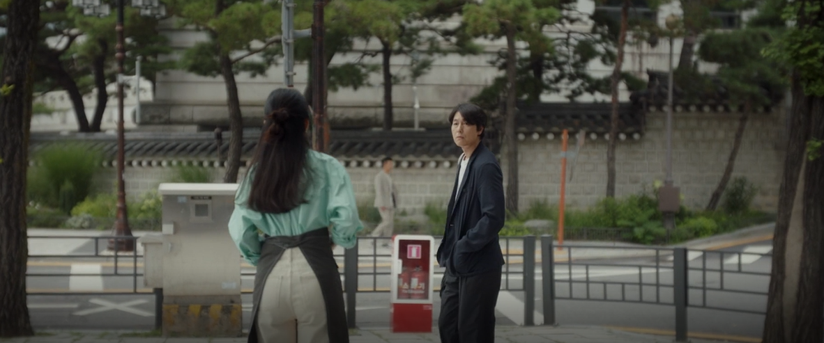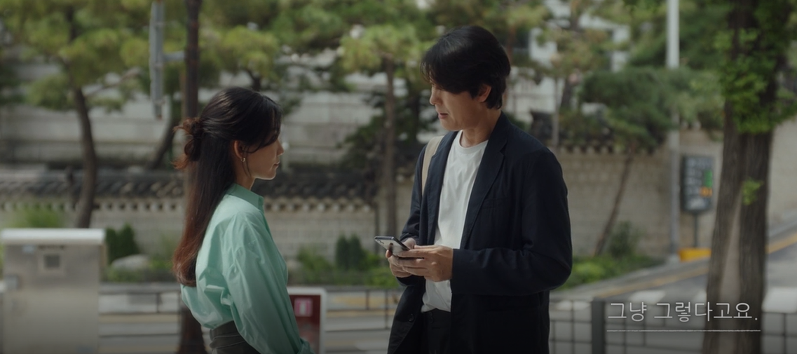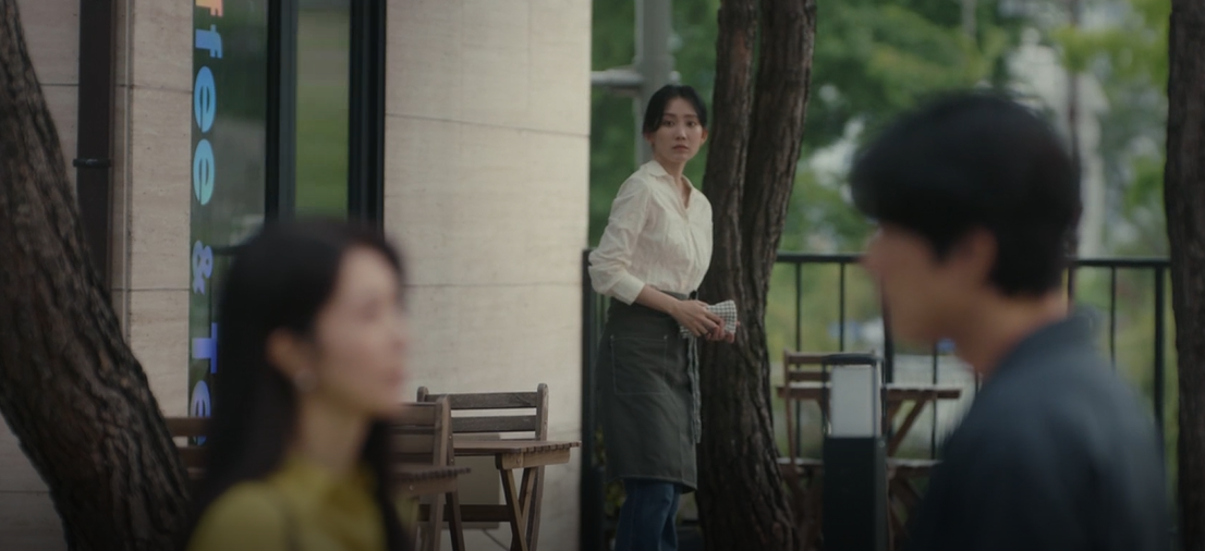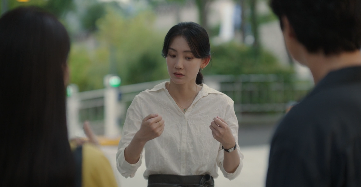 되려 모은에게 수화를 가르쳐 주는 수경. 모은은 그 상황을 대수롭지 않게 넘기고 다시 들어가 카페일을 하는데 여전히 길에서 이야기 하는 두사름을 보고는 조금 의아한듯 쳐다봅니다.