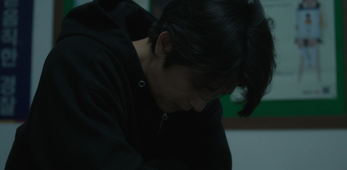 이후 집으로 돌아가는 길. 신호등앞에서 멈춰선 진우가 옆의 버스안에서 힘없이 기대어 있는 모은을 발견합니다.
