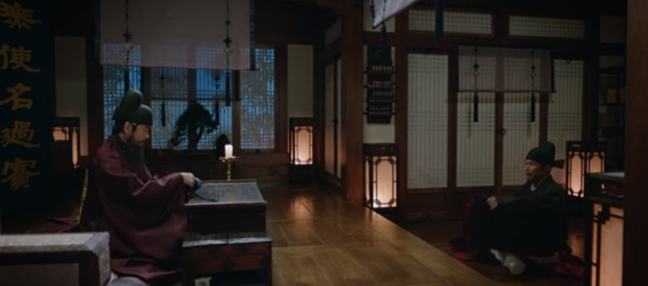 왕대비와 기싸움을 하는 임금, 이인. 중전 간택을 촉구하는 왕대비에게 미루겠다는 뜻을 밝힙니다 .