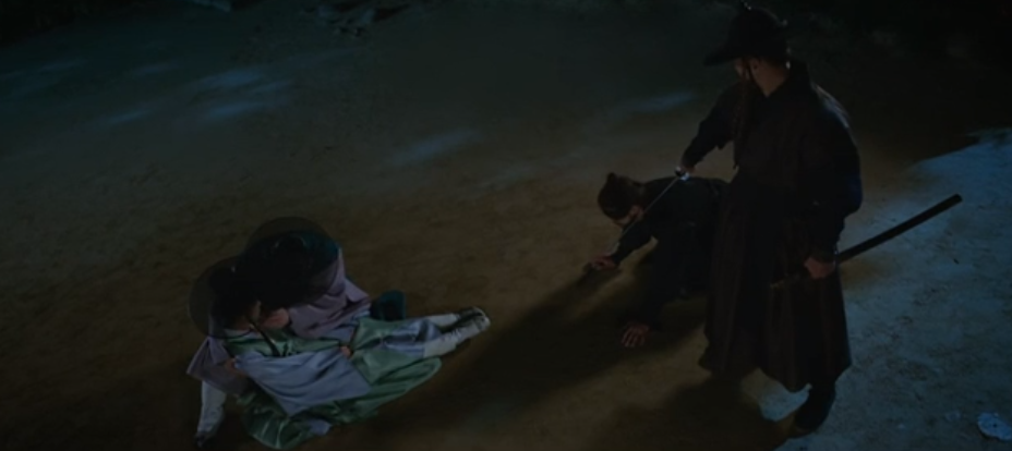 들어오는 것이 지체되자 방에서 기다리던 추달하가 임금이인을 죽이기 위해 밖으로 나왔고, 추달하가 다가오는 모습을 먼저 본 몽우(희수)가 임금을 구하고자 대신 칼에 맞습니다.