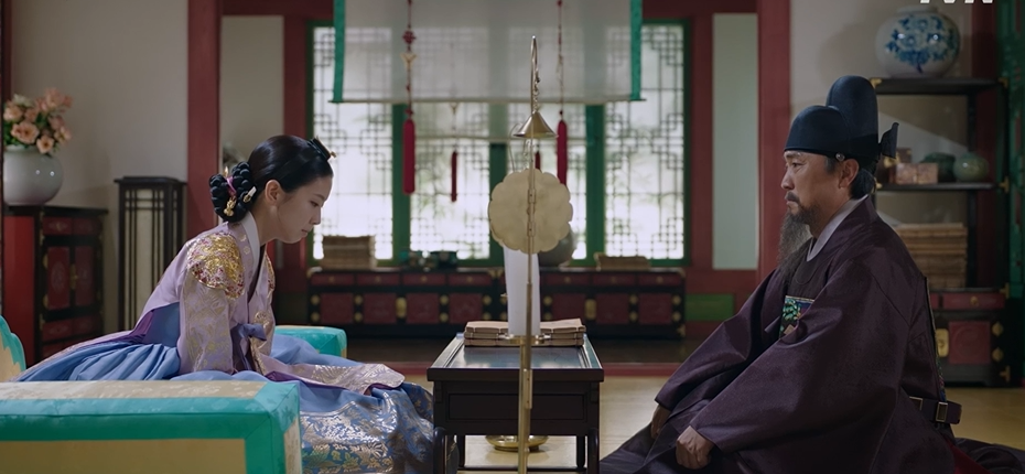 다음날 상화를 바라보는 동상궁의 시선이 따가운데, 이인은 동상궁의 청을 거절하기 위해 상화를 구실로 삼았다고 이야기 합니다. 편전 일을 챙기기도 전에 몽우를 만나 바둑둘 일을 먼저 이야기하는 이인.