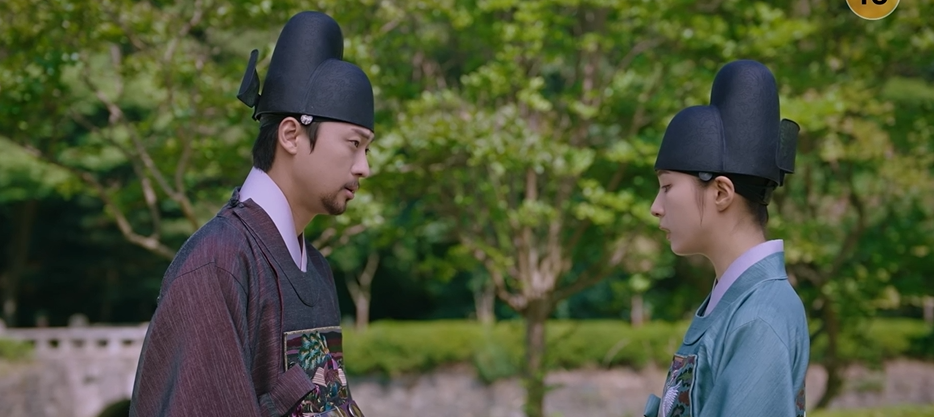 두사람이 함께 있는 것을 보고 심기가 불편해진 이인은 전에도 두사람이 친밀했다며 두사람이 짜고 기대령에 응시한것이냐고 의심을 합니다. 명하가 나서서 아니라며 대답을 하자 명하는 입다물라고 하며 몽우에게 답하게 하는 이인. 몽우는 아직 궁궐지리가 익숙치 않아 동부승지의 도움을 받아 영취정으로 가는 길이라고 대답하는데 화가난 이인은 부르지도 않았는데 왜 영취정으로 오냐며 몽우에게는 돌아가라고 합니다.