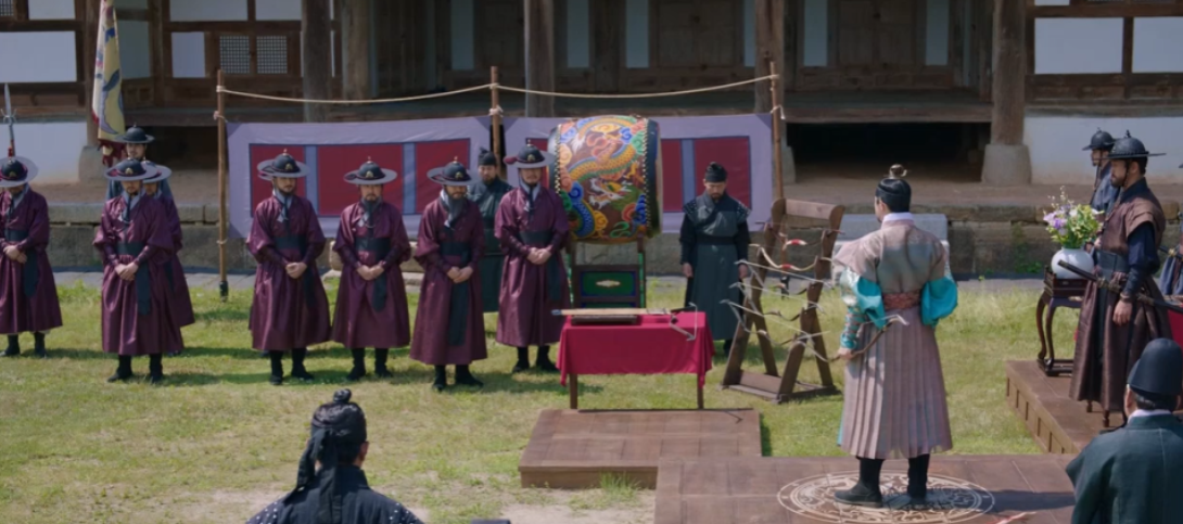 신료들은 열병이 많아 군사훈련으로 의심을 살 수 있다며 수를 줄이자 하는데 , 이인은 그러면 선대왕에 대한 자신의 정성이 부족하다는 말을 듣게 된다며 화를 냅니다. 수를 줄이지 않는 대신 어가대신 말을 타고, 수발드는 관료의 수를 줄이는 선에서 타협을 합니다.