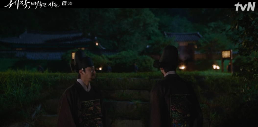 혼자 몽우를 살피러 후원에 왔다가 명하가 몽우를 껴안는 것을 임금 이인이 보고 놀라면서 6회는 끝이 납니다.