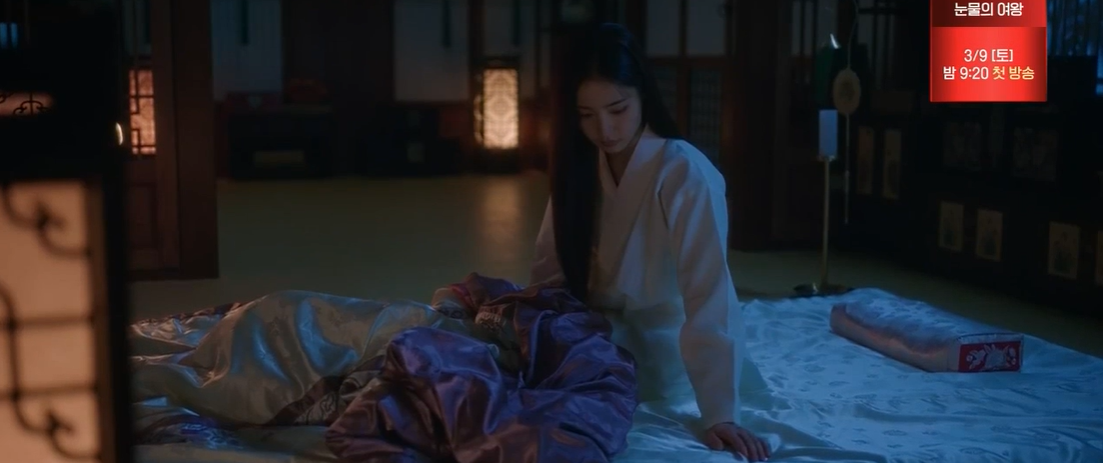 그 시각 전하의 처소에서 홀로 눈물을 흘리며 밤을 보내고 있는 동상궁.
