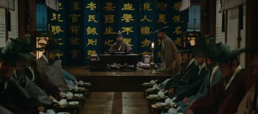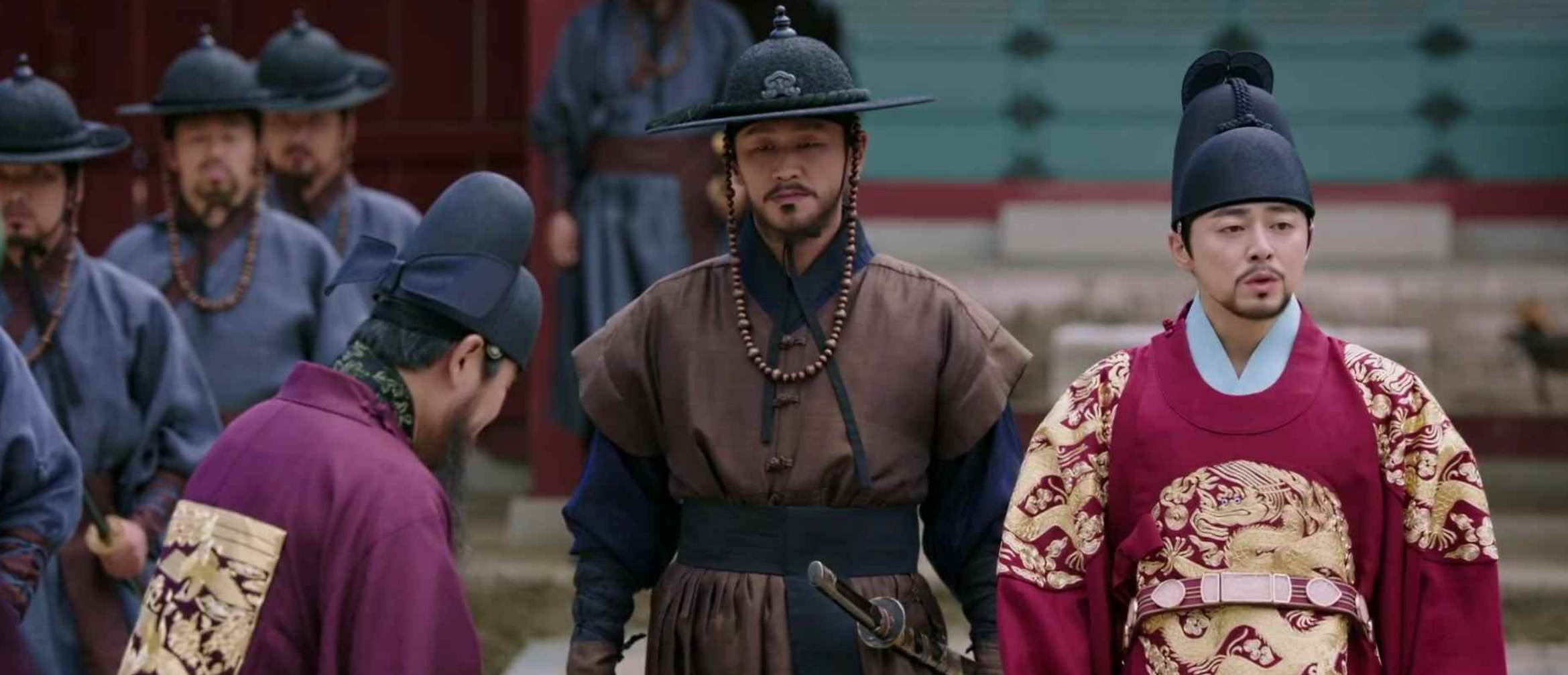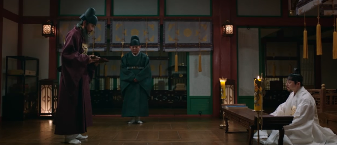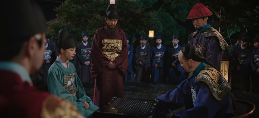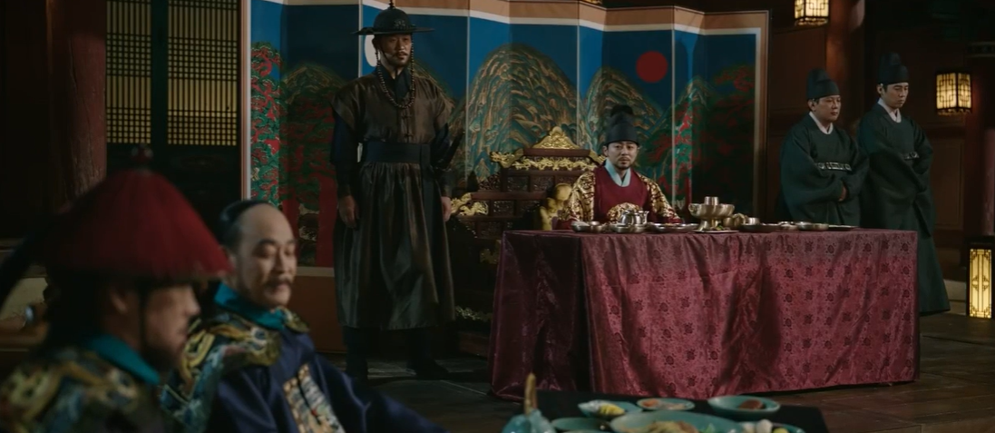 주상이 청사신에게 연회가 마음에 드냐고 묻는데, 바둑을 좋아하는 청사신은 더 좋은 것을 기대했다며 기대령을 만나 바둑을 두고 싶다고 합니다. 박종환이 기대령은 파직되어 도성밖으로 쫒겨났다고 전하는데, 청사신은 전하가 명하면 되는게 아니냐고 말합니다.