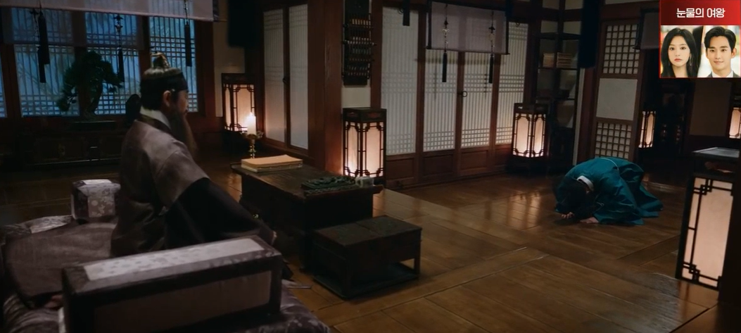 주상이 기대령을 두고 영부사와 거래를 했다며, 그 모습을 보고 전하가 기대령을 벌한것은 벌이 아니라 보호하기 위한것 같다고 전해줍니다. 다만 자신에게도 불리한 3일이란 조건을 이인이 스스로 걸은 것을 이상하게 생각하며, 대군자가와 공주자가가 위험할 수 있을것 같다며 희수와 함께 복수하기로 했던 뜻을 거두려고 합니다.