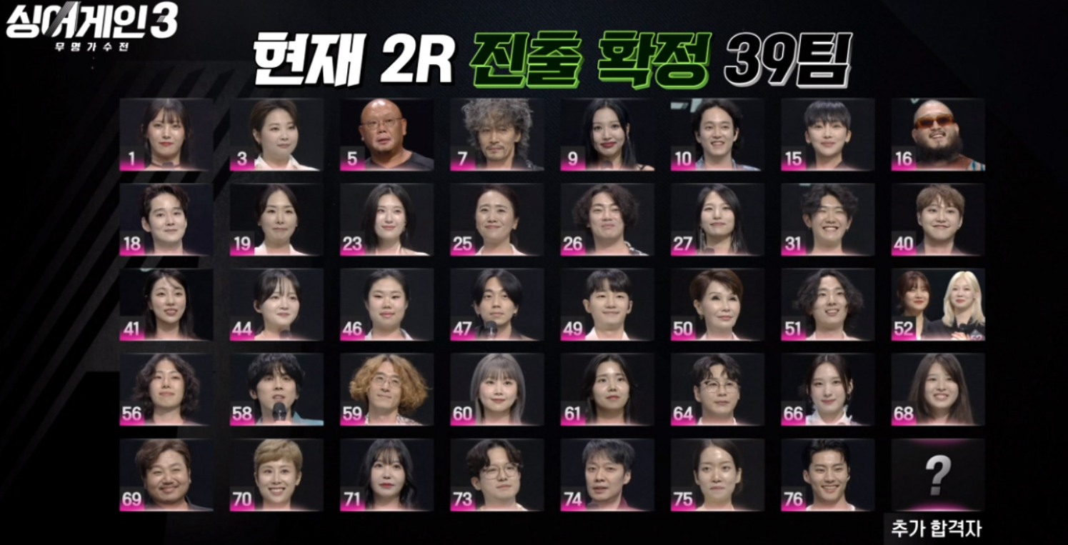 싱어게인3 출연자 77팀, 1회 합격자 노래듣기, 2회예고