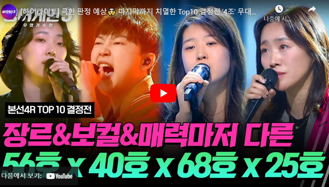싱어게인3 8회 4 라운드 Top 10 결정전 결과 & 노래 다시 듣기