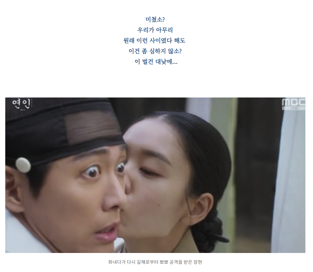 연인 파트2 15회 줄거리 : 명장면 & 명대사 줄거리 핵심요약 연인 14회에서 길채를 구하기 위해 화살을 맞고 쓰러진 장현을 길채는 지극정성으로 간호합니다. 간병때문이라도 길채가 떠나지 않고
