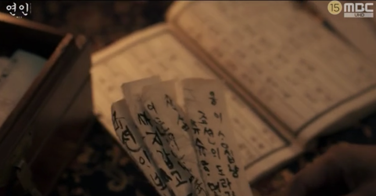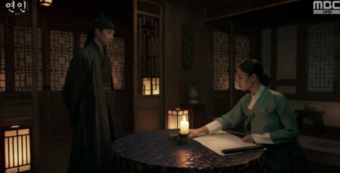15회에서 길채에게 당신은 이장현에게 저주라며 조선으로 떠날 것을 종용했던 량음은 길채가 조선으로 보낼 서신을 쓰고 있다고 하자 내심 반가워하며 조선으로 돌아가시냐고 묻습니다. 하지만 15회에서 피묻은 장현의 옷을 부여잡고 한바탕 울고 난 길채는 오히려 무언가 결심한 듯 말합니다.