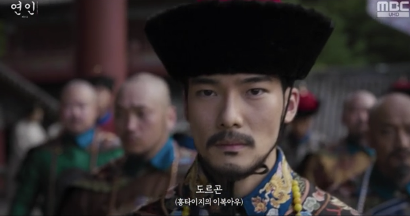 일이 바쁘게 진행되는 와중에 용골대는 장현에게 주의를 줍니다. 도르곤이 왕가의 여인들을 잡고 있는 황녀에게 손을 내밀자 황녀가 요구한 2가지를 전해줍니다.