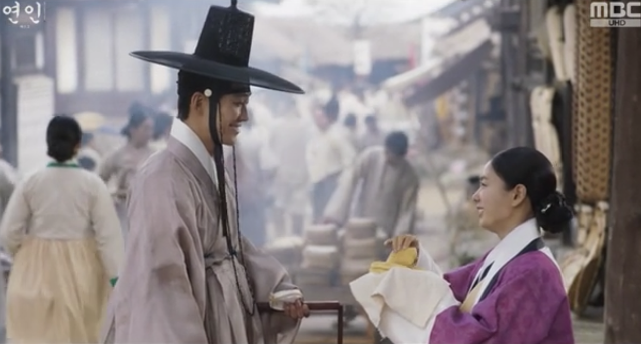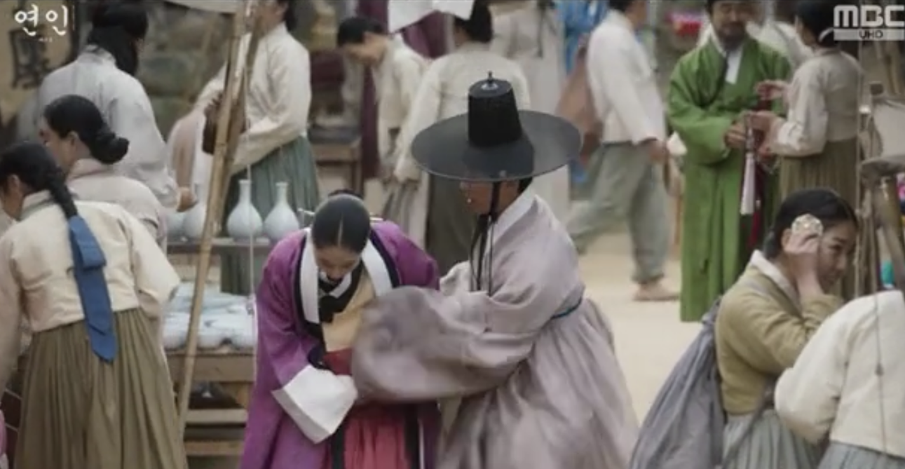 이후 길채는 임신한 척 나타나 저잣거리에서 우연처럼 자연스럽게 장현을 만나는 상황을 연출합니다.