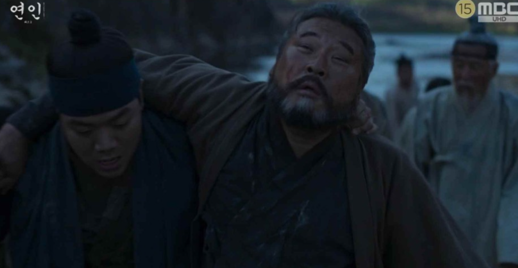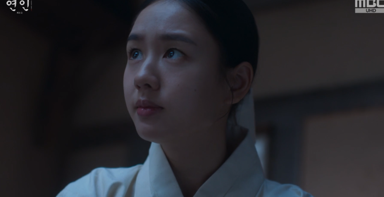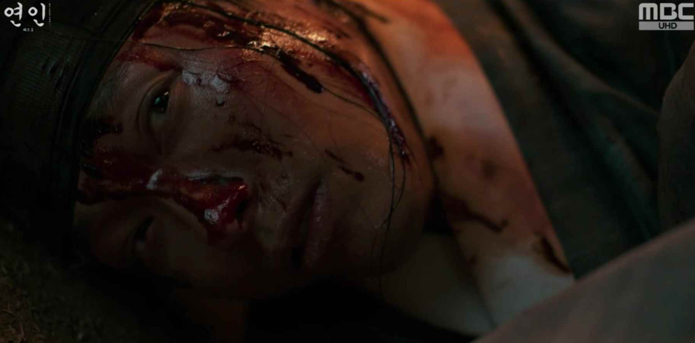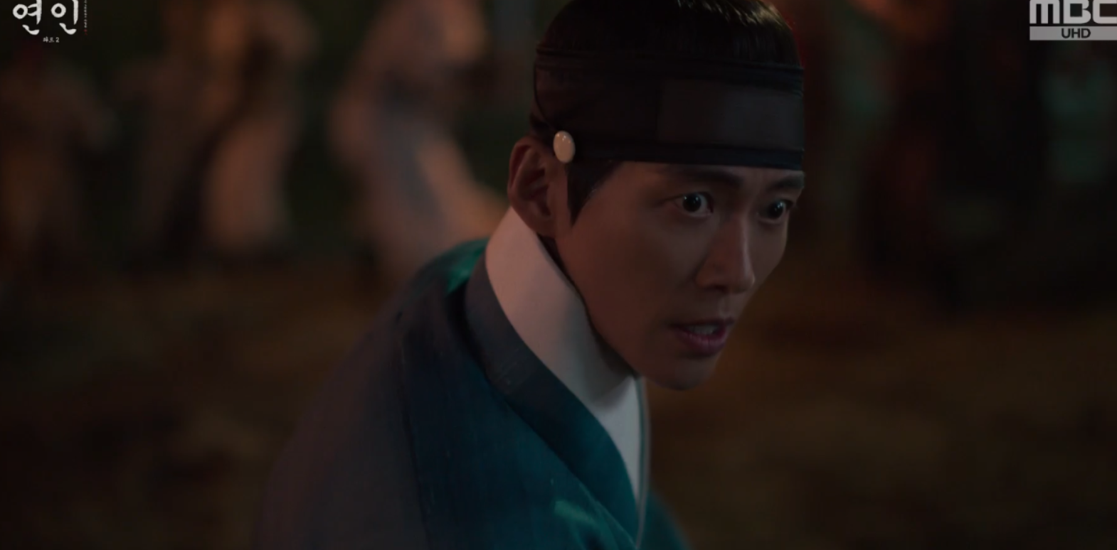 장현을 보고 놀라서 다급히 장현을 깨워보는데 의식을 찾지 못하고 인기척이 느껴지자 길채는 자신의 몸에도 피를 묻혀 자신역시 시체인듯 장현을 끌어안고 곁에 누워 그를 지킵니다.