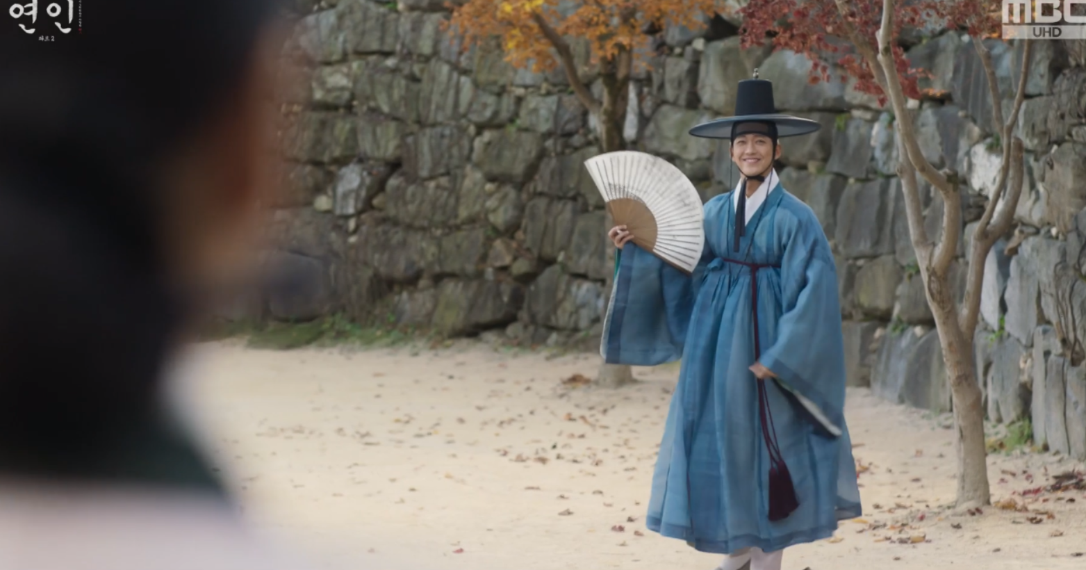 둘은 곧 다시 헤어지는데, 발길이 떨어지지 않아 장현은 자꾸만 뒤를 돌아다 보고 그론 모습이 좋은 길채도, 장현도 환하게 웃으며 잠시지만 아쉬운 이별을 합니다.