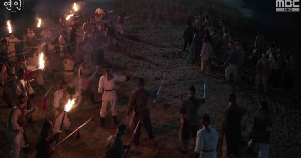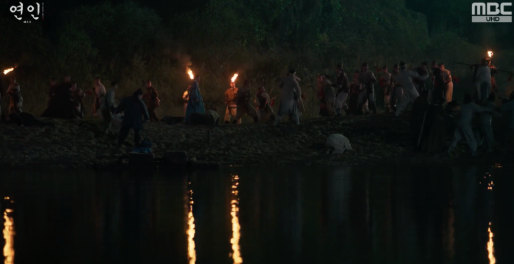 포로들은 알수없는 자들로 부터 공격을 받고 다시 강을 건너 심양으로 돌아가라고 협박을 받습니다. 장현과 양천형님, 구잠이, 량음이등 싸울 수 있는 자들이 모두 방어를 해보지만 수적으로 당연히 열세.