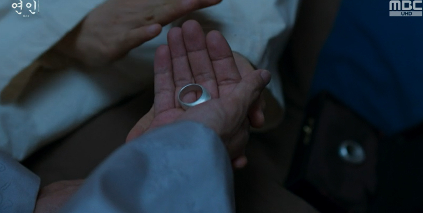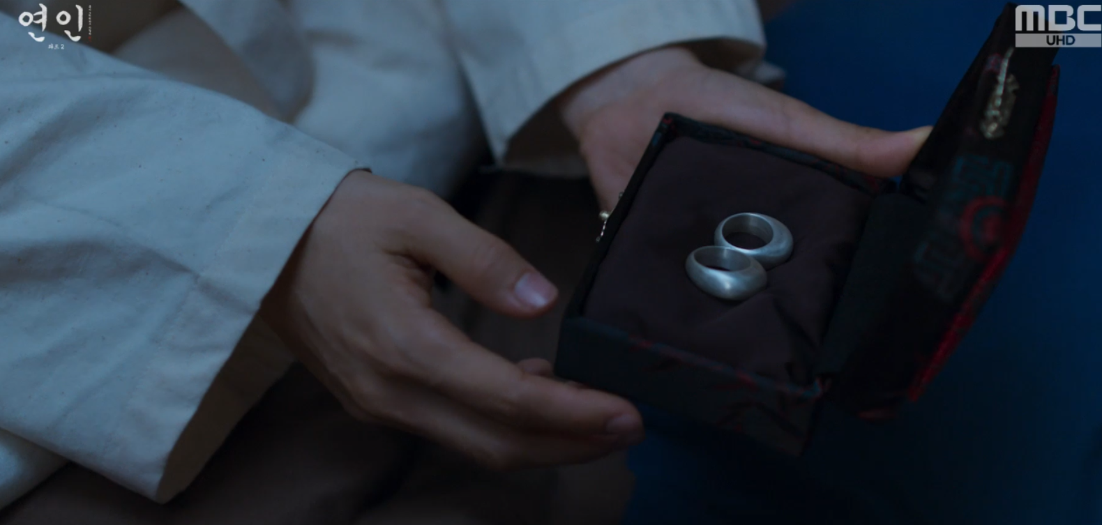 누워서 이야기를 나누다고 장현이 큰형님과의 약속이 있어서 한달쯤 심양에 다녀오겠다는 이야기를 하자 벌떡 일어난 길채가 가락지를 꺼내어 장현에게 건냅니다.