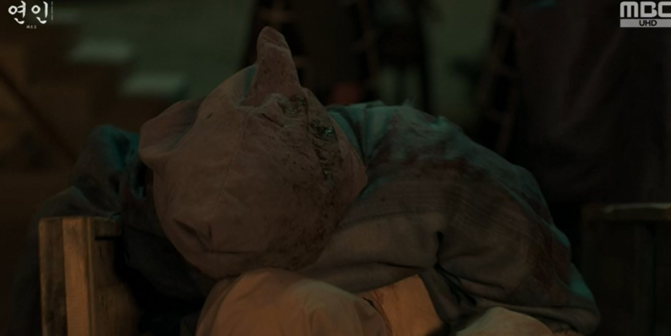 궁녀의 안내대로 궁을 나가는 척 하다가 주위를 살피던 길채는 내사옥에서 시체들이 들려져 나오는 것을 보고 숨어서 이를 지켜봅니다. 그리고 다가가 그중 장현의 옷과 비슷한 시체를 보고 머리에 씌워진 것을 벗겨보자 그는 바로 피투성이가 된 이장현.