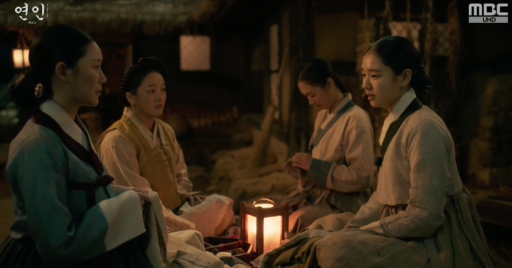 아무것도 모르는 길채가 장현에게 직접 수놓은 베갯잎을 선물하겠다며 바느질을 하고 있는데 마침 궁에서 사람이 나와 길채에게 일을 사주합니다.