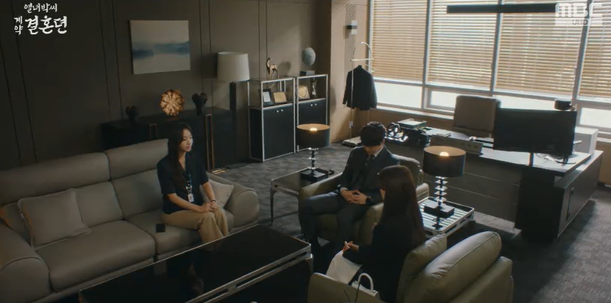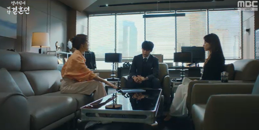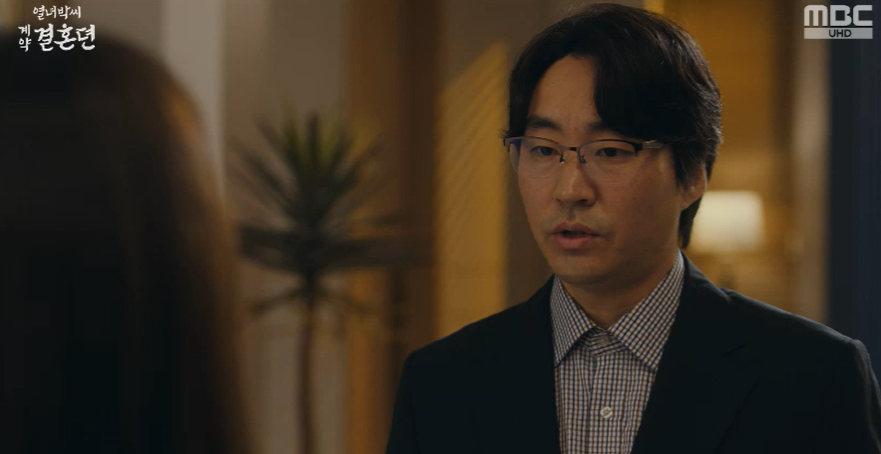 엘레베이터에서 우연히 마주친 유하나 대리는 자신이 마케팅팀에 들어온 되로 강회장의 지시로 태하를 감시하고 있었음을 고백합니다. 태하의 계약결혼 신부를 못오게 한것도 강회장이였고, 연우와의 계약 결혼 사실도 처음부터 다 알고있었다고 전해주는 유대리.