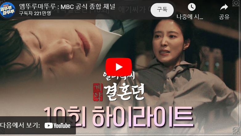 ※ 12/29(금), 12/30(토) 결방:  <열녀박씨 계약결혼뎐> 방송은  2023 MBC 방송연예대상, 2023 MBC 연기대상 편성으로 결방 예정이라고 합니다. 시청에 착오 없으시기 바랍니다.