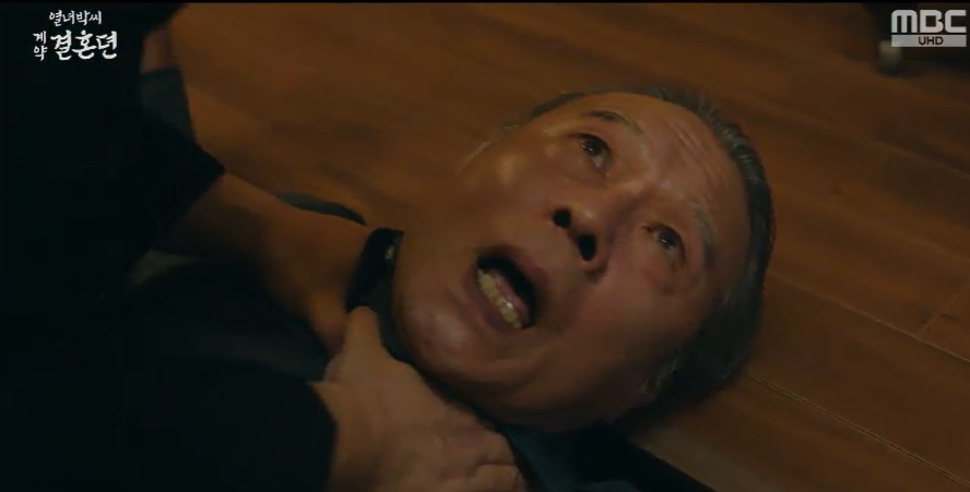 그 시각 강회장네 집에는 사라져서 경찰조사도 못받고 있던 황명수가 들어와 앉아있습니다. 강회장 때문에 자신의 가족을 잃은 황명수는 강상모의 목을 졸라 죽이려고 합니다.