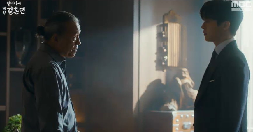 유하나 대리 이야기를 듣고는 바로 할아버지를 찾아가고 단도직입적으로 묻습니다. 처음엔 민대표가 그랬냐며 발뺌을 하다가 강회장은 결국 내자식이 잘 못되는 꼴을 볼수 없어서 그랬다고 이야기 합니다.