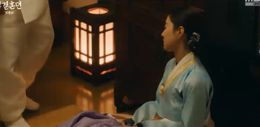 조선의 연우는 전하의 가마를 멈춰세우고 자신이 열녀비를 위해 죽임을 당할뻔한 사연을 이야기 합니다. 연우는 전하앞에서 스스로 지키려는 절대로 열녀비를 받는건 칭송받아 마땅하나 그때문에 조선의 여인들의 집안을 위해 열녀비를 강요당하고 있는 현실을 고하며 조선의 여인들을 살펴달라고 청합니다.